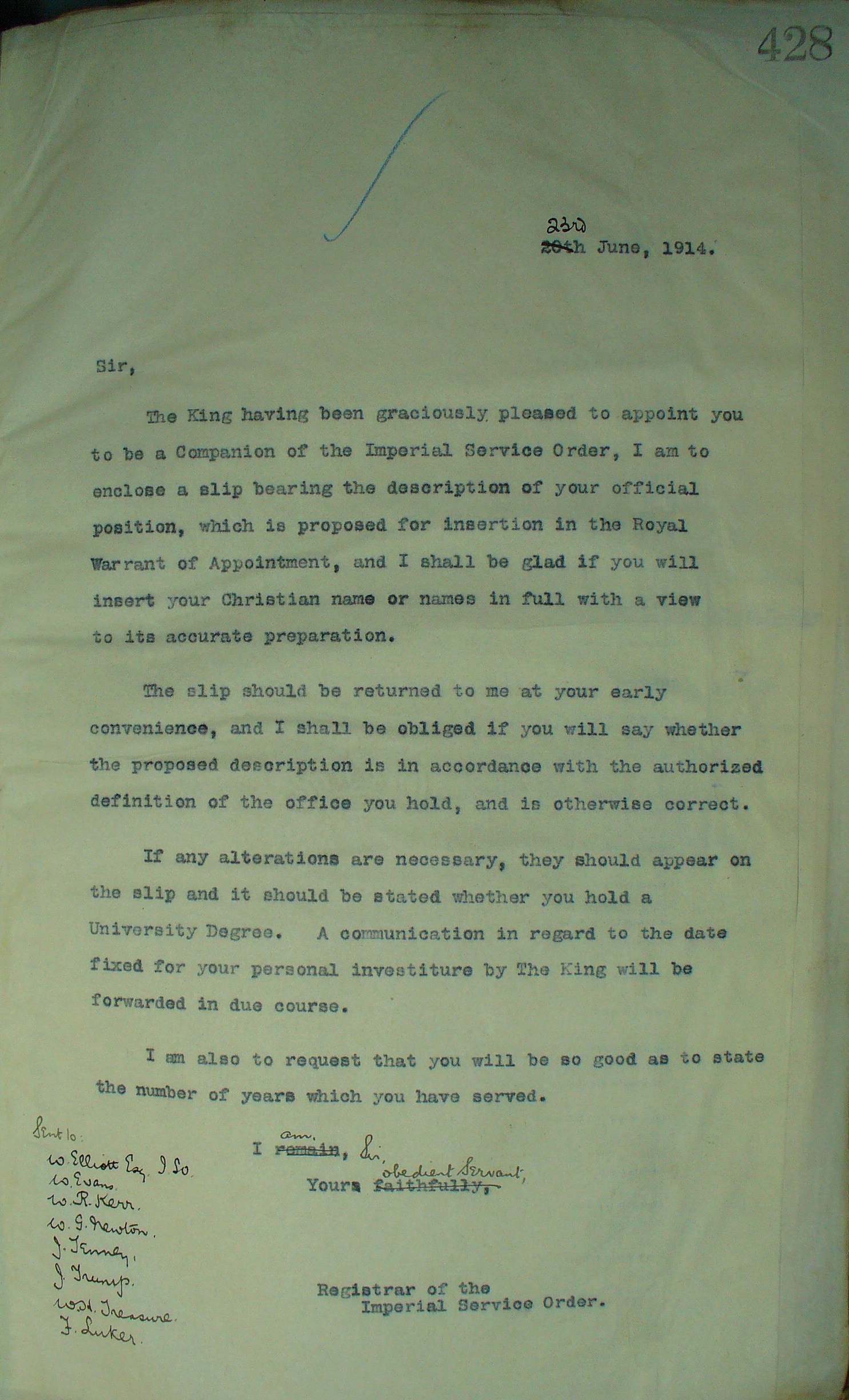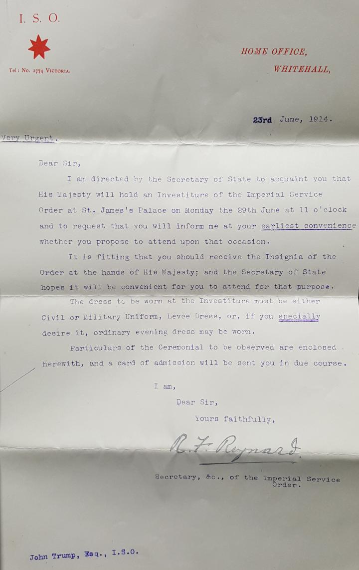 HO 180/3 at TNA includes the file copies of correspondence relating to the investiture of ISO recipients. TNA records shown below have a darker hue, whereas the letters received by Trump are whiter.