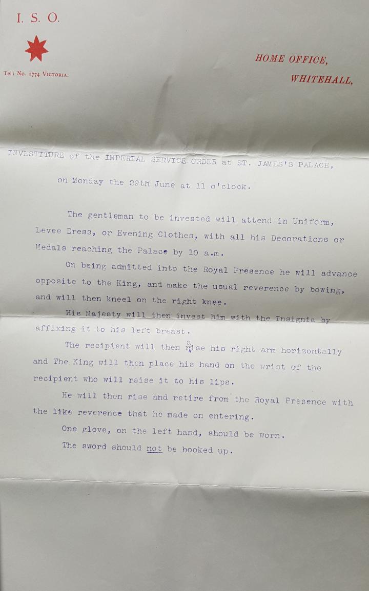 The ISO was created by Edward VII in 1902 to reward those long serving, middle ranking civil servants who were not in a position to qualify for the Orders of the Bath or St Michael and St George.
