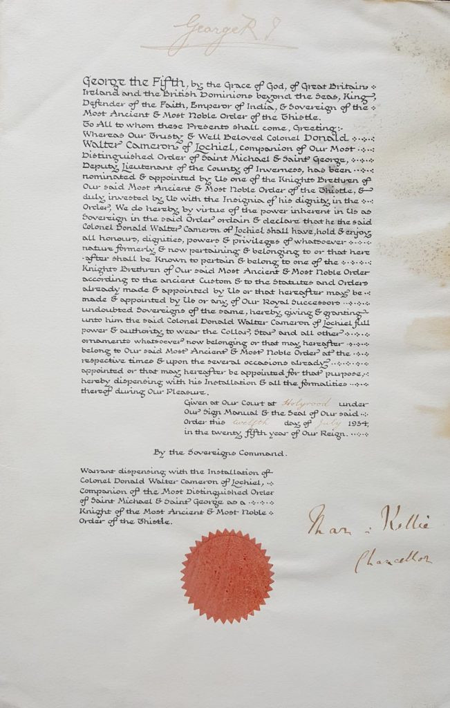Cameron was made a KT in 1934.