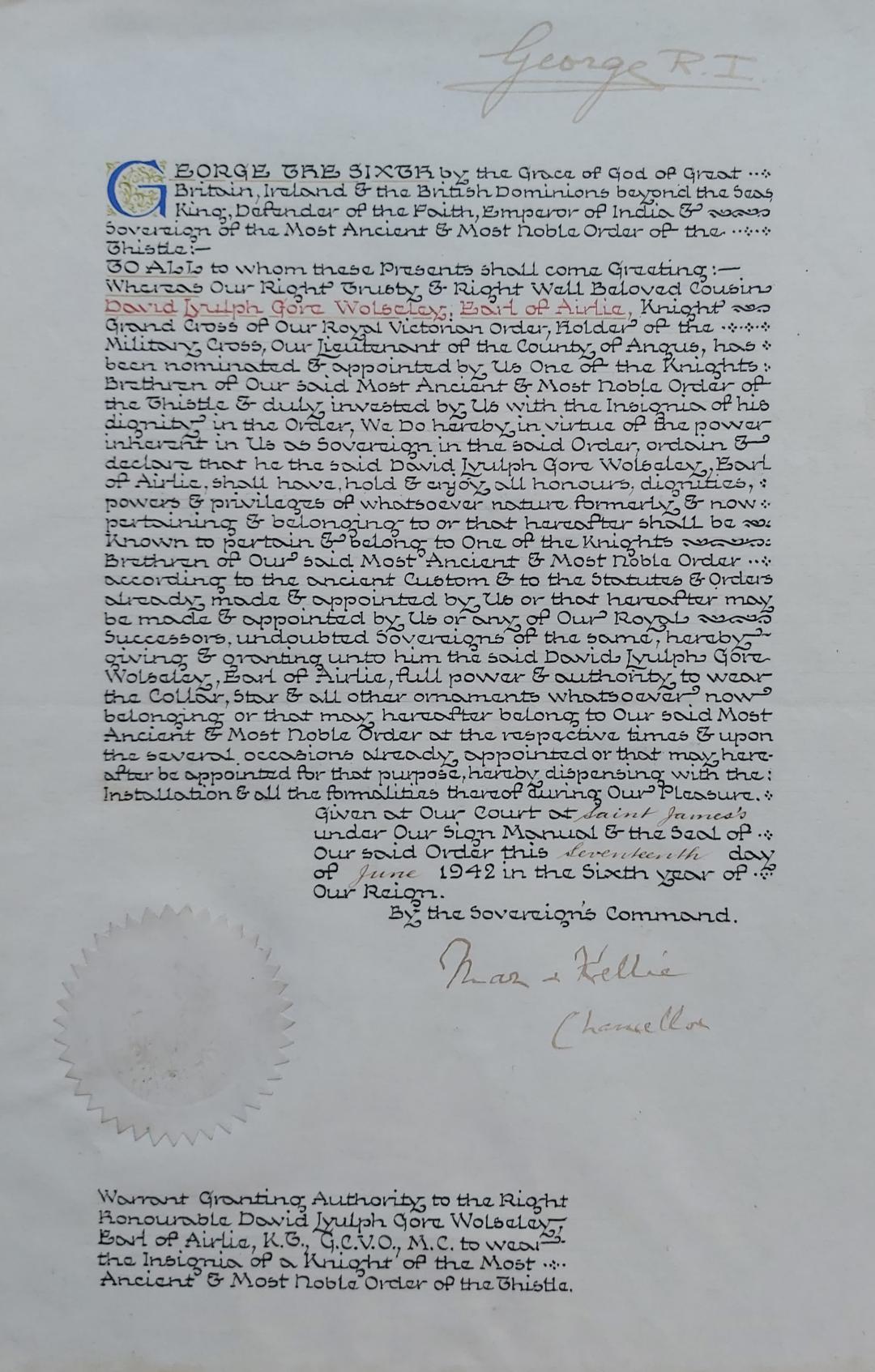 Airlie became a KT in 1942.