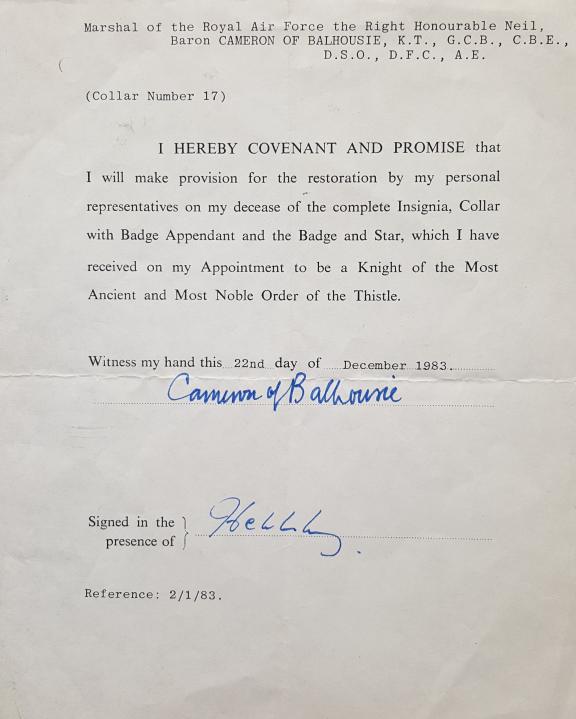 Insignia of the Order is returnable and Knights are asked to complete a covenant for the return.
