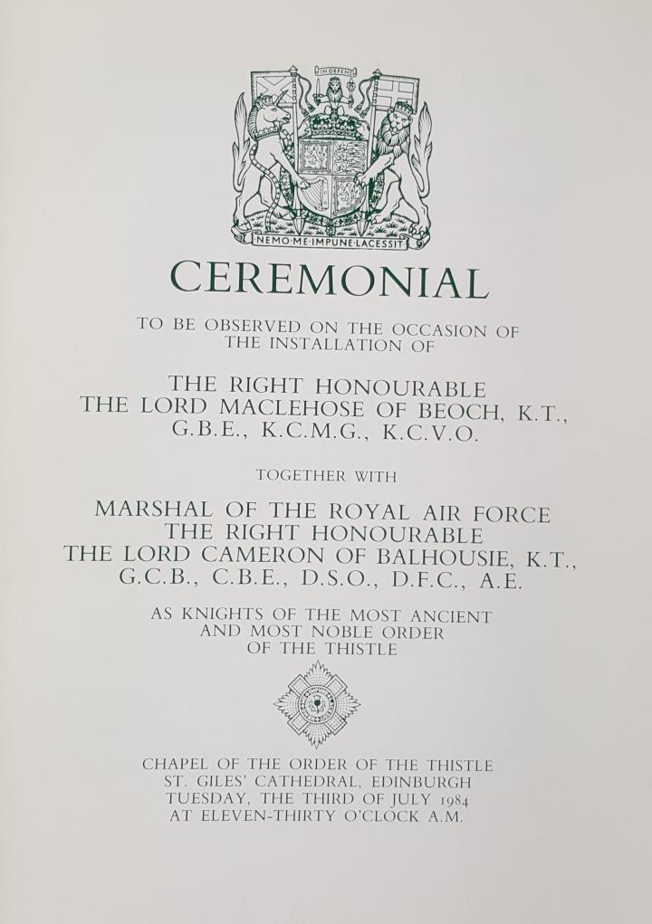 This is the cover of the order of service for the installation of new knights.